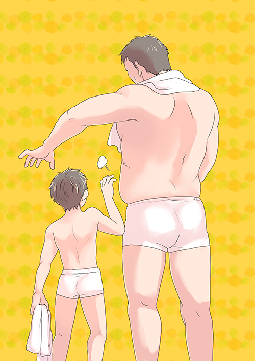 ●チカライヌ先生からのコメント● いいないいな、人間て、いいな。こういったほのぼのお尻愛、大好きです。 誰かに描いて欲しいな〜と思っていたテーマに、ピタッとキました! 小田和正のあの曲を聴きながら見ると、なんだか温かい涙が…心洗われるいいお尻達です。 華美な表現を省いて、しっかりと親子のはだかんぼコミュニケーションに集中して描き切っているなと思いました。 ひとつ願望を言えば、できれば背景を描いて欲しかった。 作者さんの大切にしている事が、イタズラ尻と優しいパパ尻から窺えます。ほっとしました! |