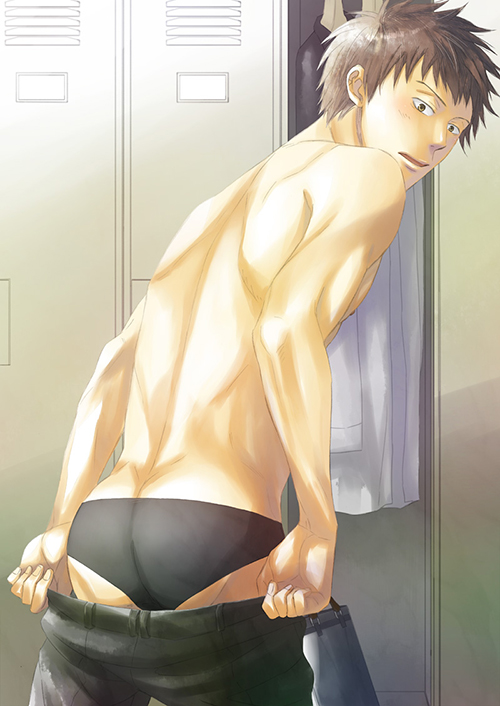 ●チカライヌ先生からのコメント● お尻と顔の表情がいいですね〜「あ?」みたいな。 自分の魅力にさっぱり気がついてないところがいいんですよ。ふふふ…。 普通のガサツっぽい男子が、脱ぐとアラいいお尻ってところに、作者さんの言わんとするところが見えて頷きました。 脱ぎかけもしくは穿きかけってのもスキだらけでいいですよね。左からの光源に浮かぶスラックスのシワが美しいです。 ナチュラルな色合いとロッカーの無機質な背景で、筋肉質な彼の背中やなんかエロい黒パンお尻がよりいっそう引き立ってます。 硬派なお尻であるからこそのエロス! 素敵です。 |