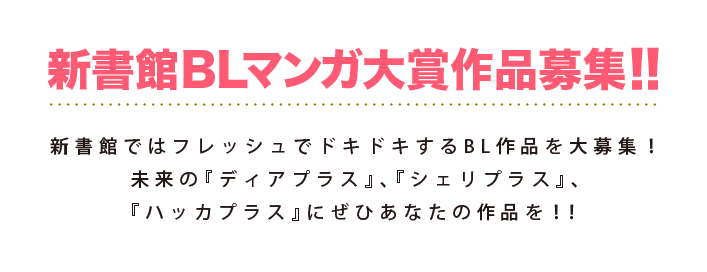 また、「新書館BLマンガ大賞」に投稿中の作品は、その結果が出るまで他社への投稿を禁じます。
