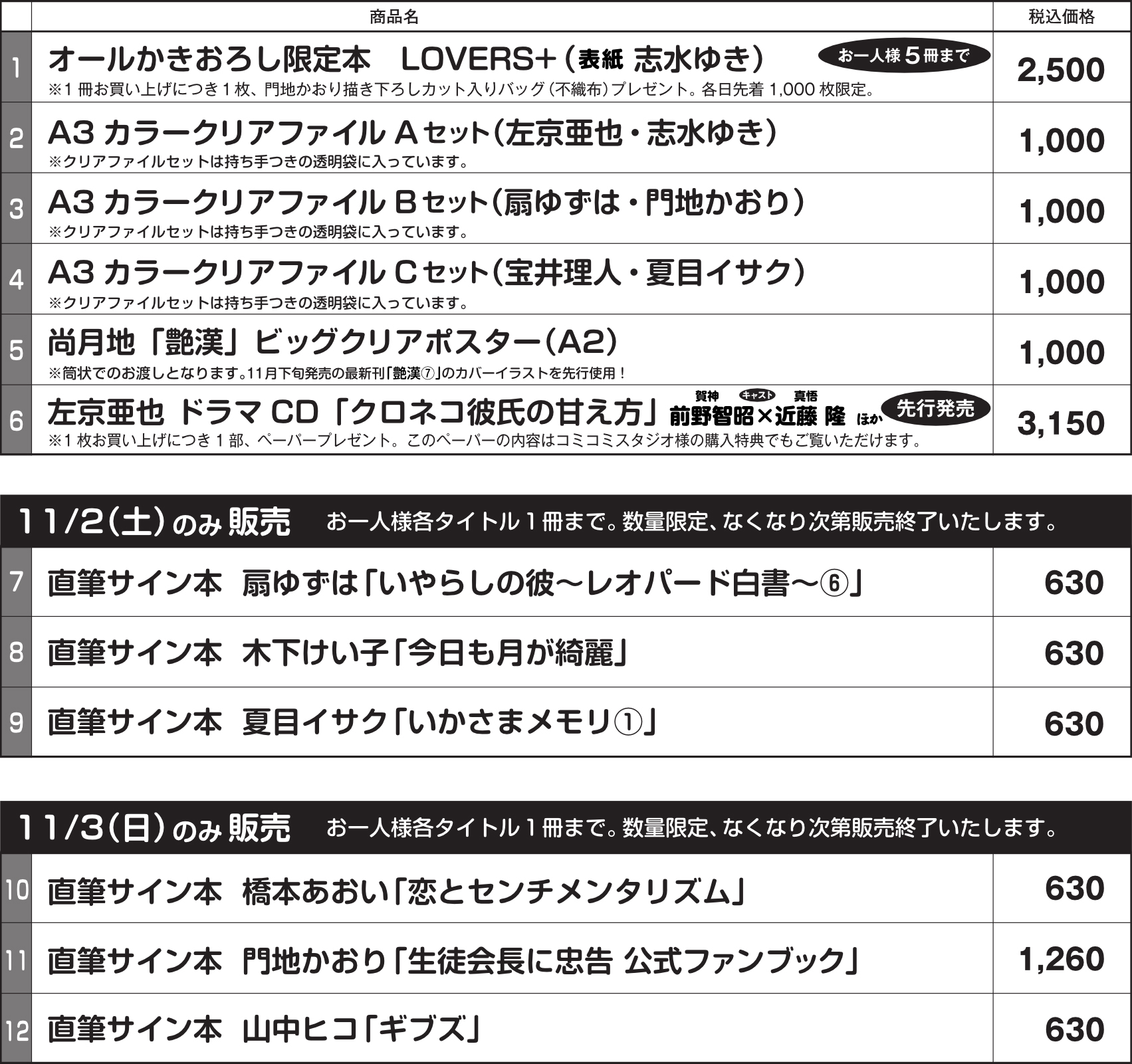 ●販売する全商品について、販売状況により後日通販にて販売をする可能性がございます。