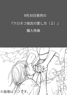 9月30日発売の「クロネコ彼氏の愛し方(2)」の特典と合わせると一枚のイラストが完成するよ♡