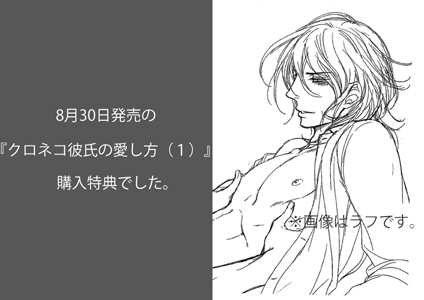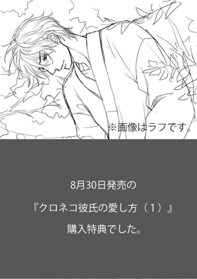 8月30日に発売した「クロネコ彼氏の愛し方(1)」の特典と合わせると一枚のイラストが完成するよ♡