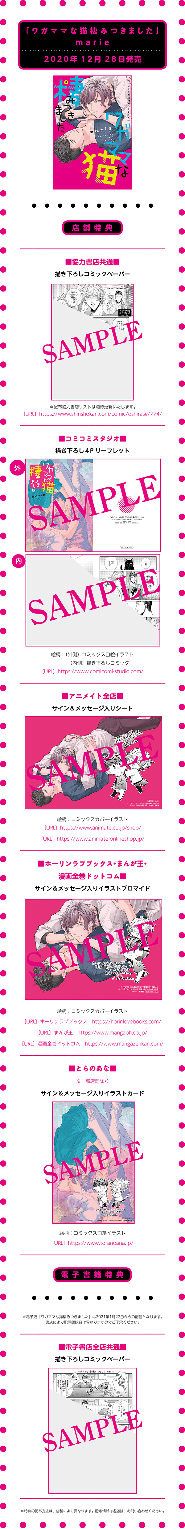 marie先生「ワガママな猫棲みつきました」特典情報!
