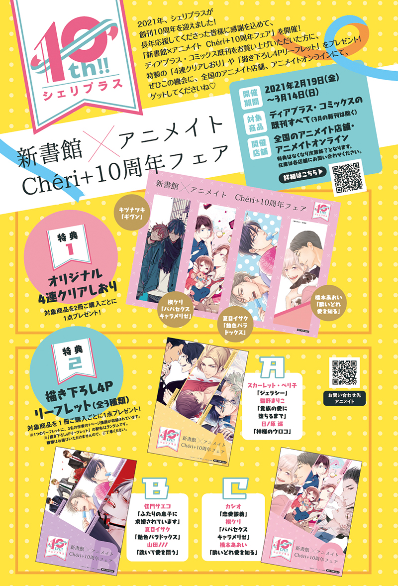 お知らせ 2021年2月19日 「新書館×アニメイト Chéri+10周年フェア」開催! 詳細はこちらへ https://www.animate-onlineshop.jp/contents/fair_event/detail.php?id=105041 新書館