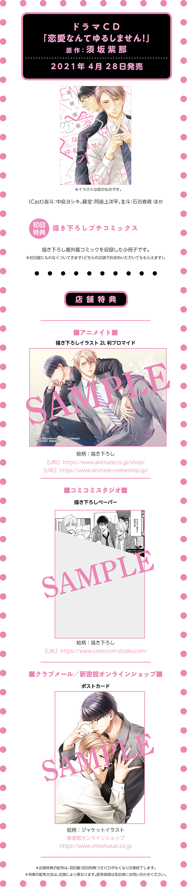 須坂紫那先生原作ドラマCD「恋愛なんてゆるしません!」購入特典情報!