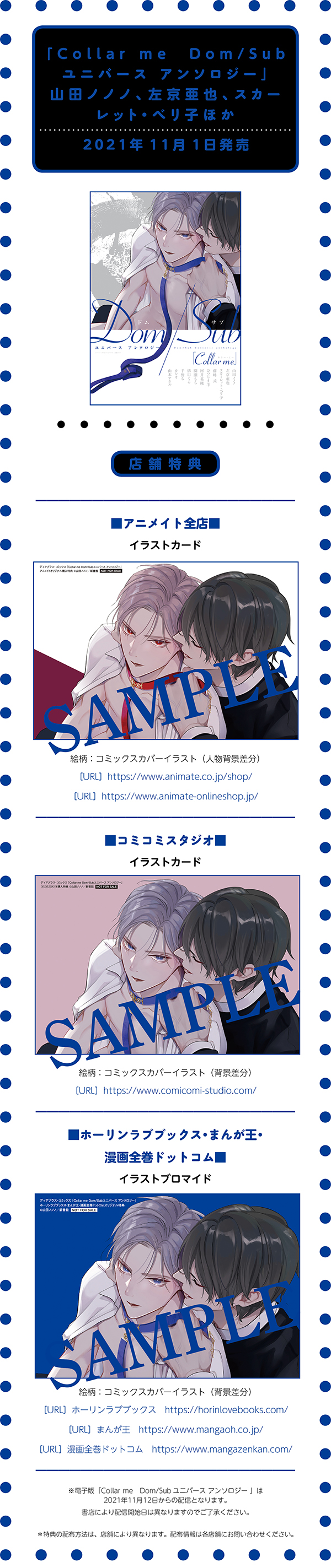 山田ノノノ先生、左京亜也先生、スカーレット・ベリ子先生ほか「Collar me Dom/Subユニバース アンソロジー」購入特典情報!