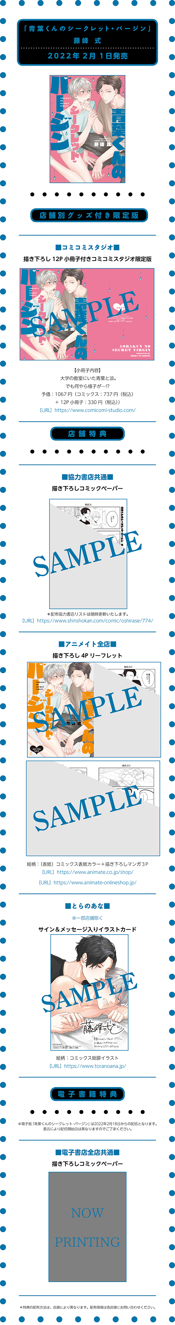 藤峰 式先生「青葉くんのシークレット・バージン」購入特典情報!