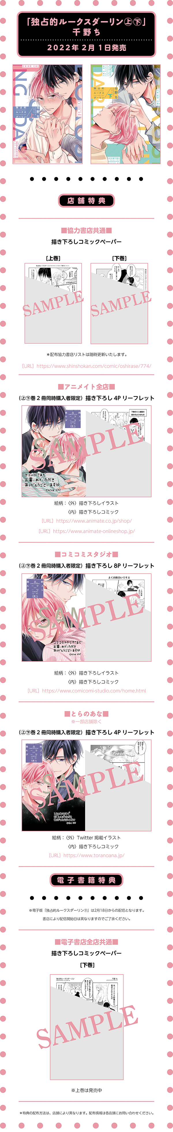 千野ち先生「独占的ルークスダーリン㊤㊦」購入特典情報!