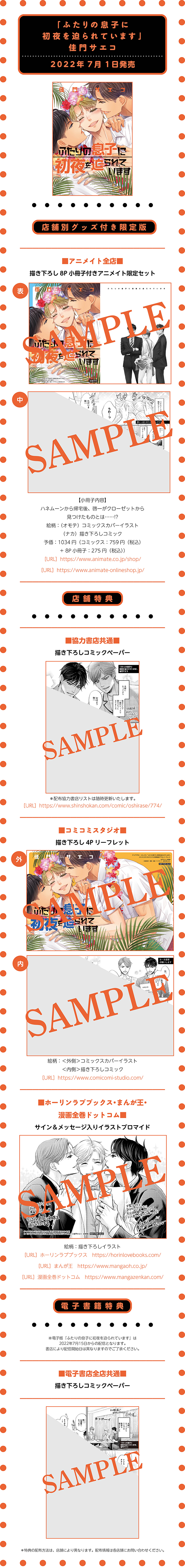佳門サエコ先生「ふたりの息子に初夜を迫られています」購入特典情報!