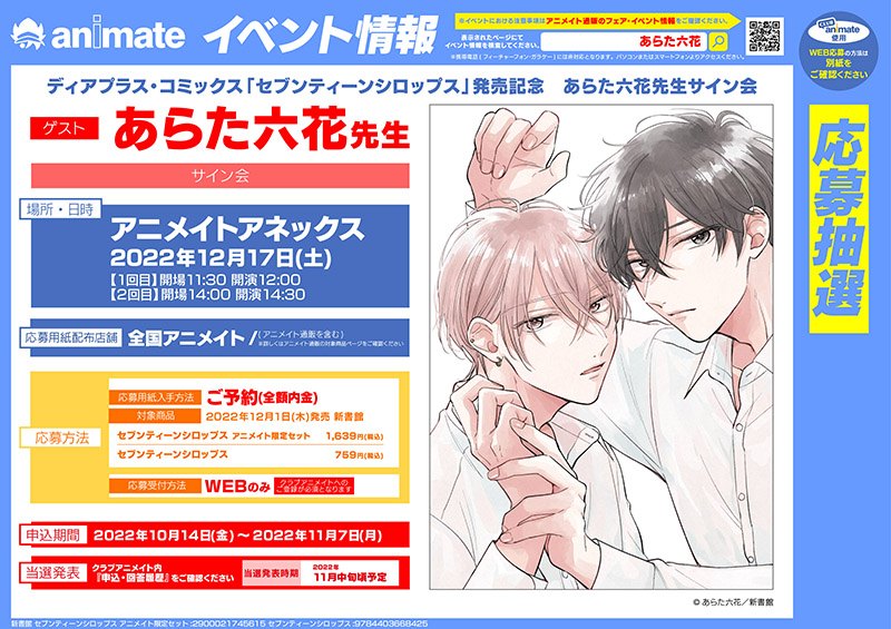 あらた六花先生「セブンティーンシロップス」発売記念リアルサイン会開催!