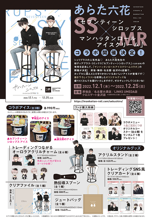 12月1日発売、あらた六花先生のディアプラス・コミックス「セブンティーンシロップス」の刊行を記念して、「セブンティーンシロップス×マンハッタンロールアイスクリーム」のコラボが開催決定!
