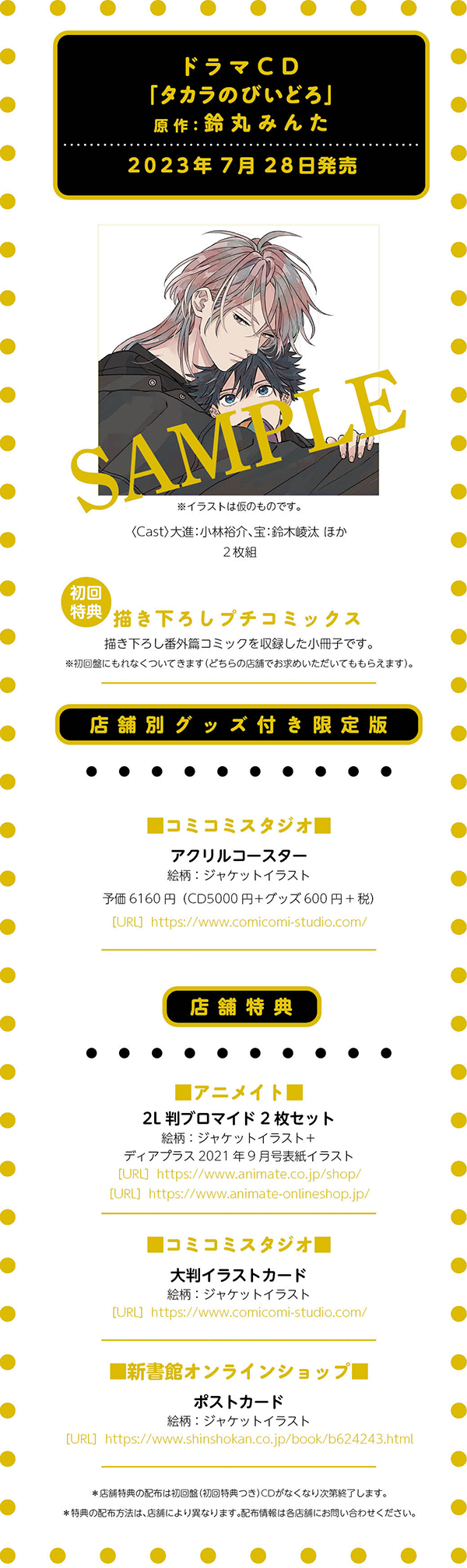 鈴丸みんた先生原作ドラマCD「タカラのびいどろ」購入特典情報!