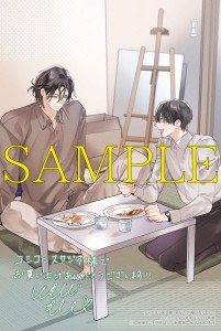 コミコミスタジオ様でお買い上げいただいた方に、サイン&コメント入りイラストカードをプレゼント。