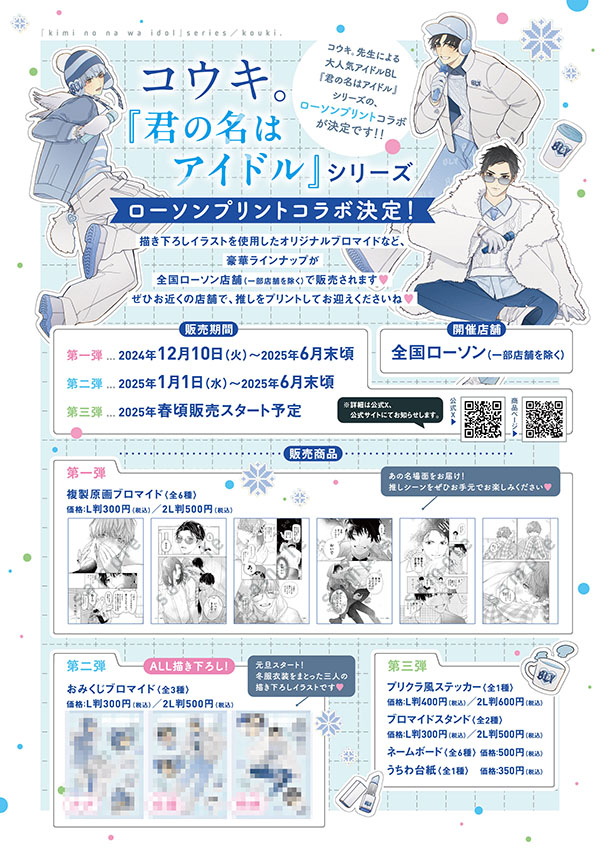コウキ。先生による大人気アイドルBL『君の名はアイドル』シリーズのローソンプリントコラボが決定です! ぜひチェックしてくださいね♡