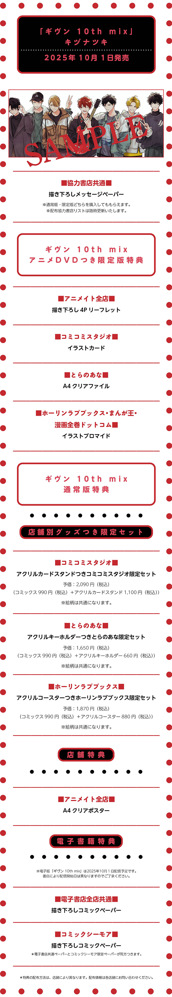 キヅナツキ先生「ギヴン 10th mix」「ギヴン 10th mix アニメDVDつき限定版」購入特典情報!