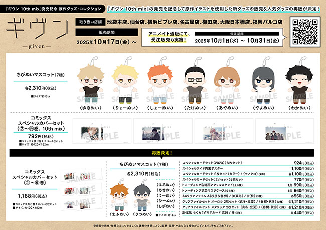 10月1日発売、キヅナツキ先生D+C「ギヴン 10th mix」の刊行を記念して、原作イラストを使用した新グッズの販売&人気グッズの再販が決定!