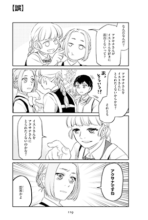 1コマ目(誤)「アクサナさんがイストさんを好きに面白くないって?」