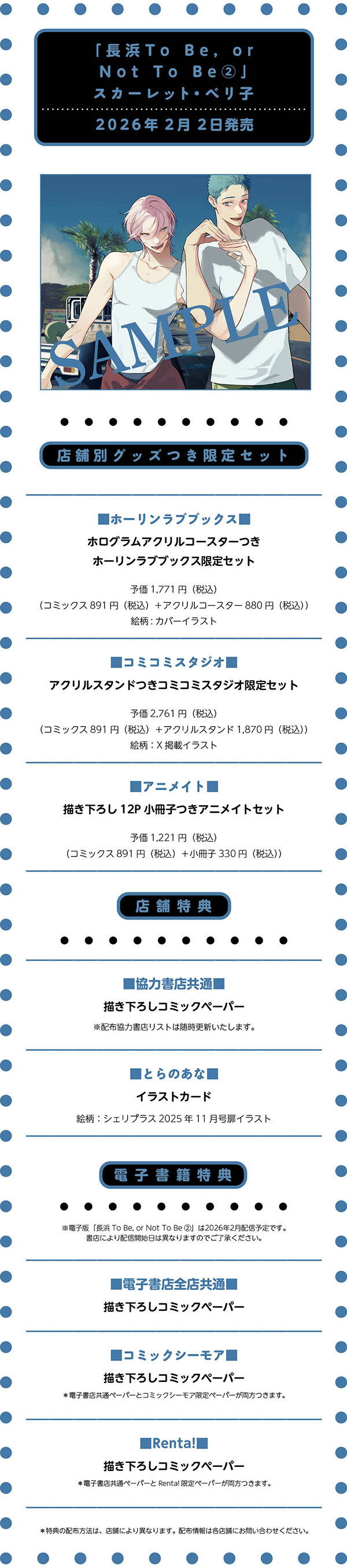 スカーレット・ベリ子先生「長浜To Be, or Not To Be②」購入特典情報!