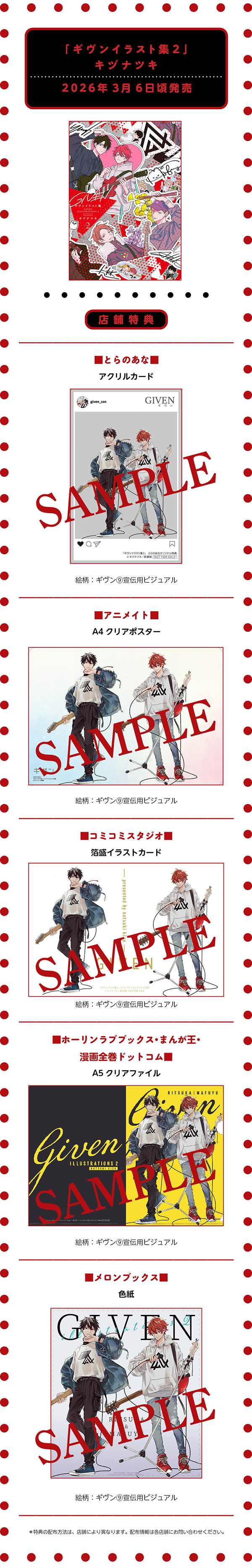 キヅナツキ先生「ギヴンイラスト集2」購入特典情報!