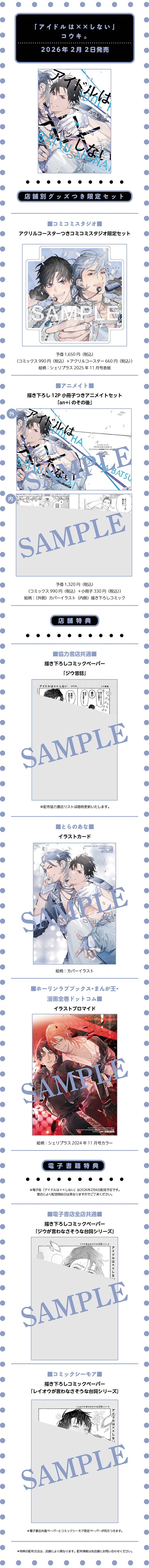 コウキ。先生「アイドルは××しない」購入特典情報!