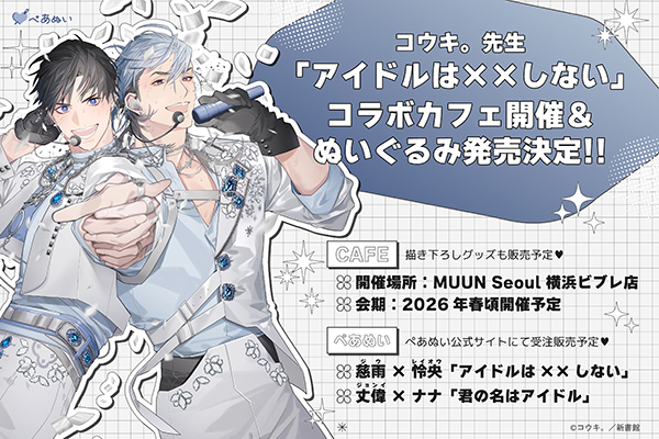 コウキ。先生「アイドルは××しない」コラボカフェ開催&ぺあぬい発売決定!