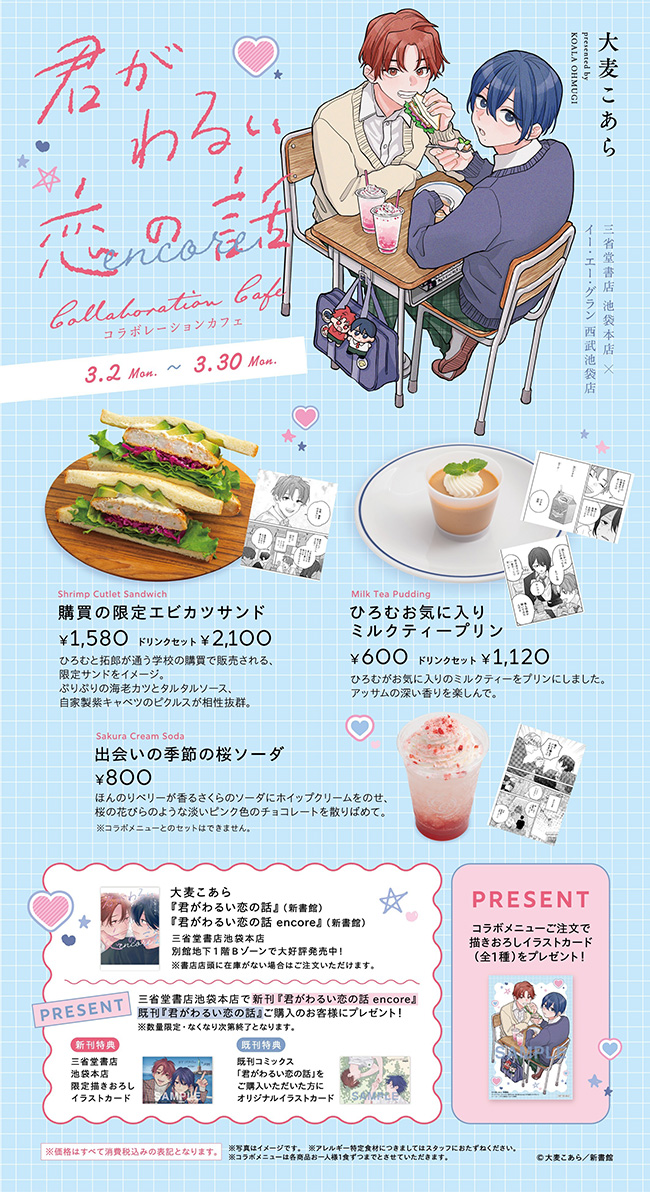 大麦こあら先生「君がわるい恋の話 encore」コラボカフェ&連動フェア開催!