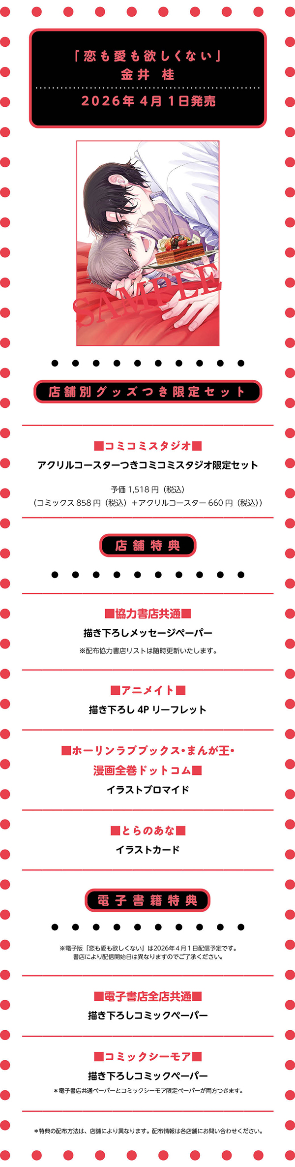 金井 桂先生「恋も愛も欲しくない」購入特典情報!