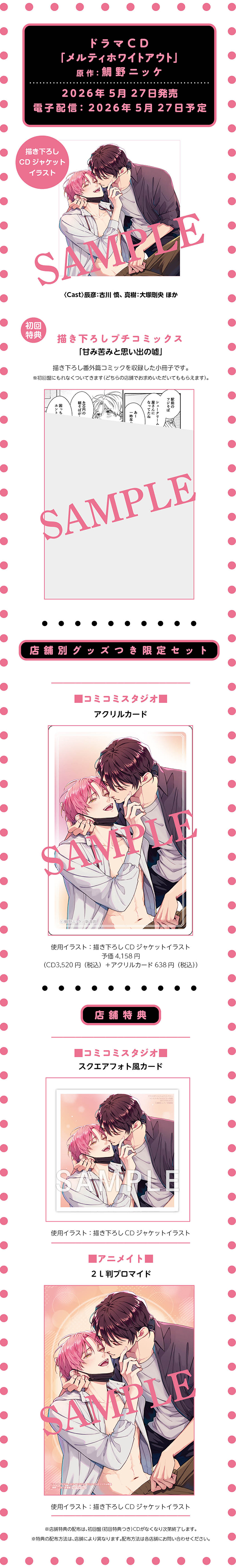 鯛野ニッケ先生原作ドラマCD「メルティホワイトアウト」購入特典情報!