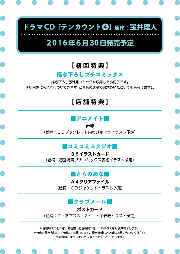 宝井理人先生原作ドラマCD「テンカウント④」特典情報!