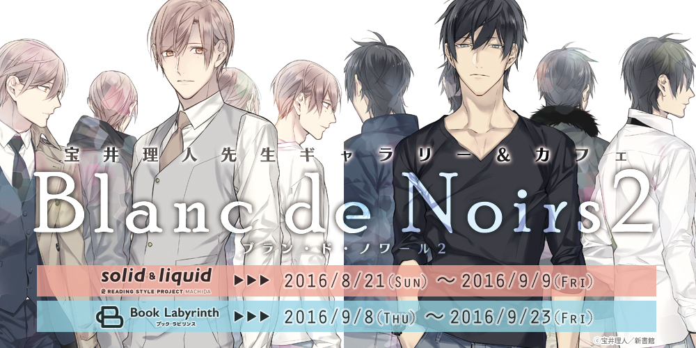 昨冬、広島のコミコミスタジオ併設のギャラリー&カフェ『ブックラビリンス』にて開催された、宝井理人先生コラボカフェ『Blanc de Noirs(ブラン・ド・ノワール)』が、リバイバルで帰ってきます!
