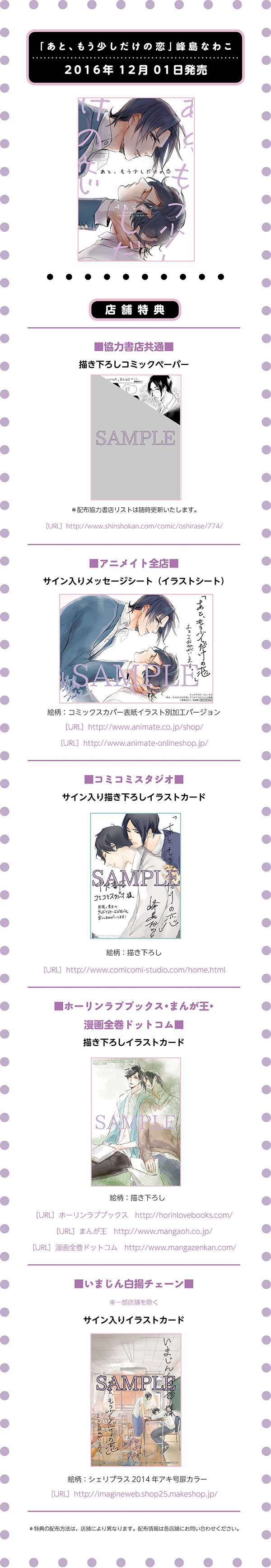 峰島なわこ先生「あと、もう少しだけの恋」特典情報!!