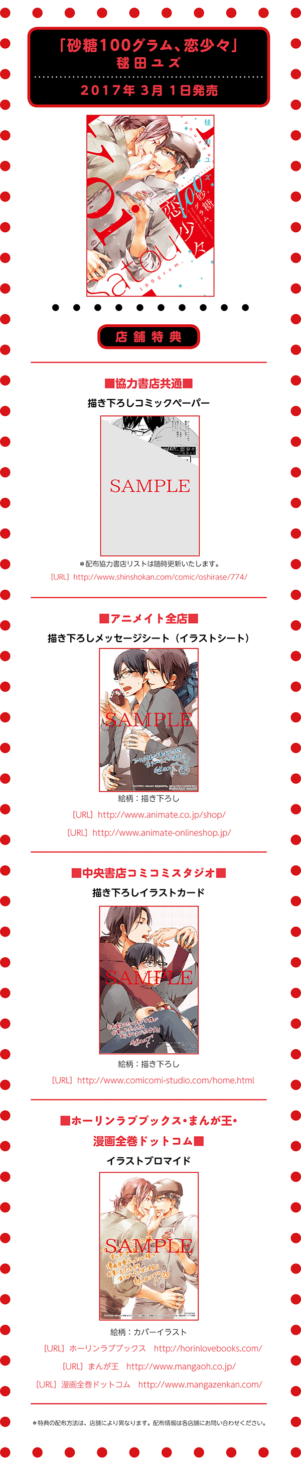 毬田ユズ先生「砂糖100グラム、恋少々」特典情報!!