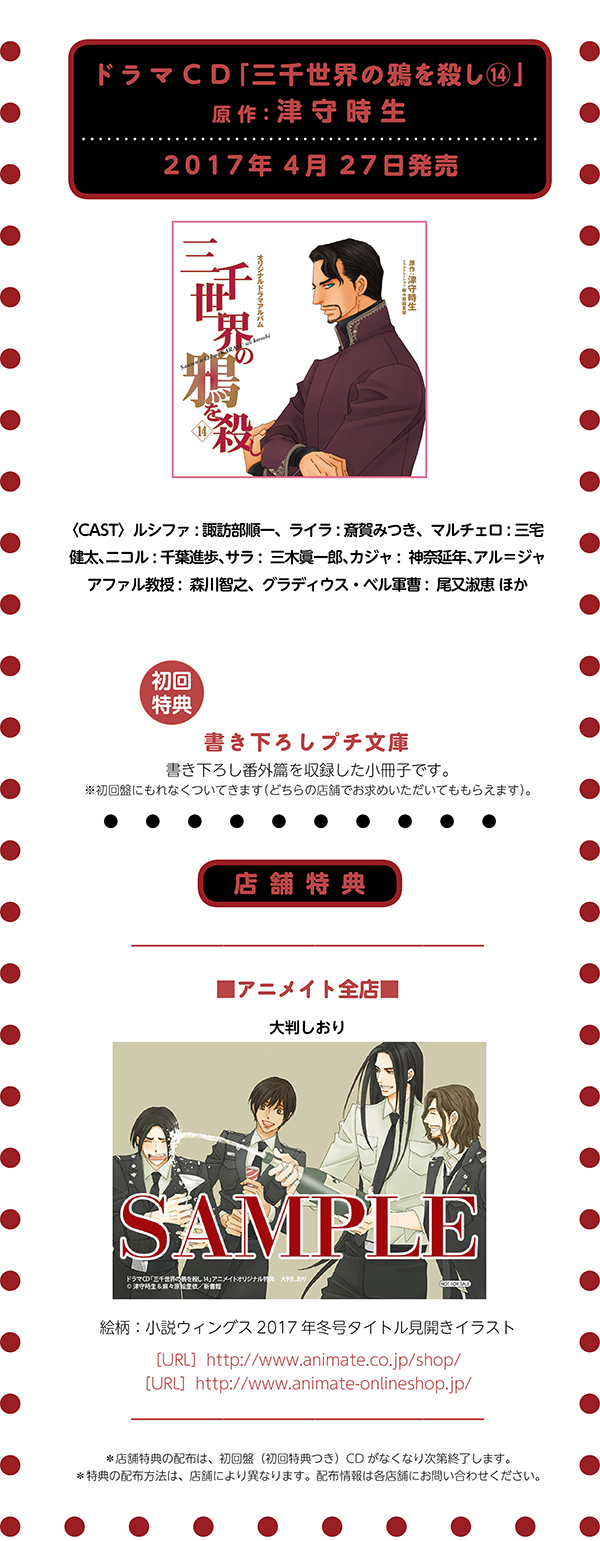 津守時生先生原作ドラマCD「三千世界の鴉を殺し⑭」特典情報!