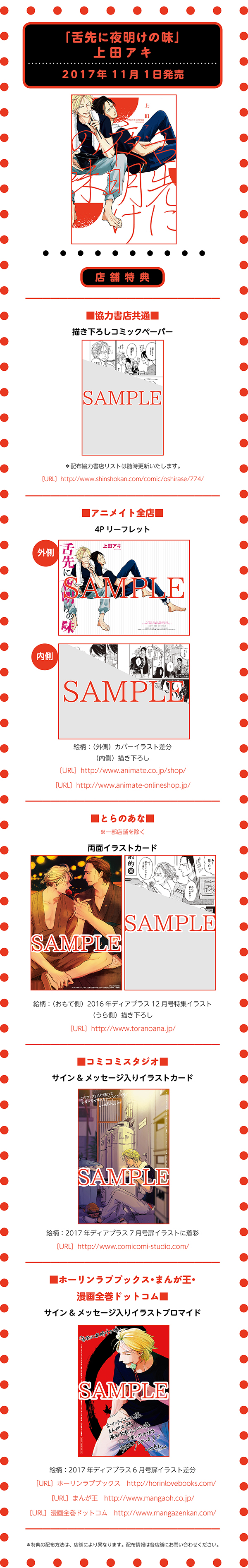上田アキ先生「舌先に夜明けの味」特典情報!