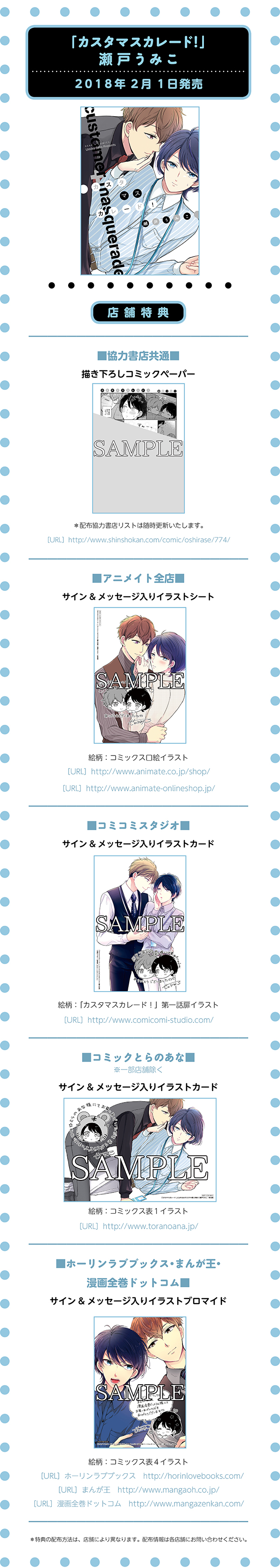 瀬戸うみこ先生「カスタマスカレード!」特典情報!