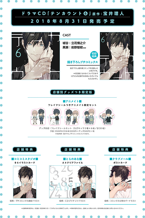 宝井理人先生原作ドラマCD「テンカウント⑥」特典情報!