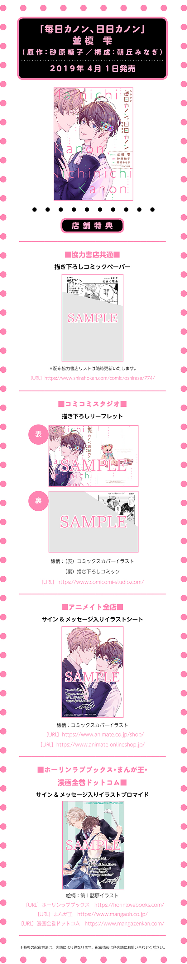並榎 雫先生「毎日カノン、日日カノン」(原作:砂原糖子先生/構成:朝丘みなぎ先生)購入特典情報!