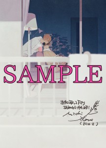 コミコミスタジオ様でお買い上げいただいた方に、サイン&コメント入りイラストカードをプレゼント。
