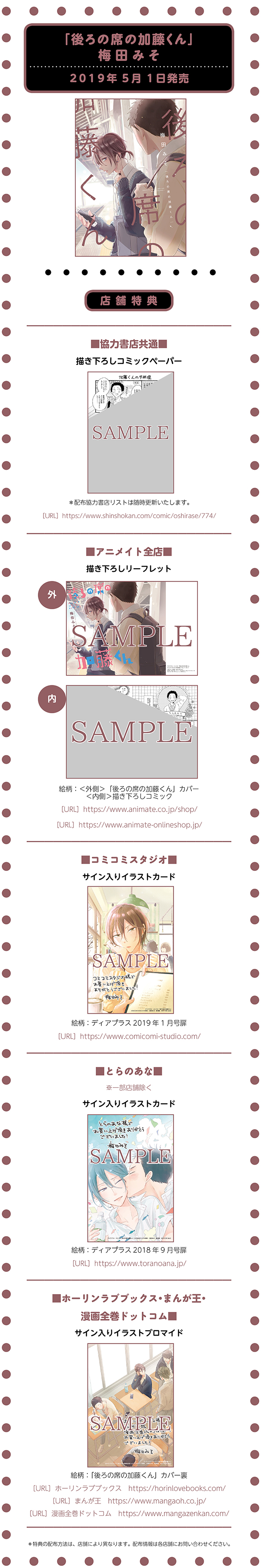 梅田みそ先生「後ろの席の加藤くん」購入特典情報!