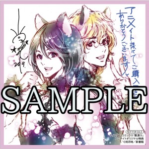 アニメイト全店でお買い上げいただいた方に、サイン&メッセージ入り描き下ろしミニ色紙をプレゼント。