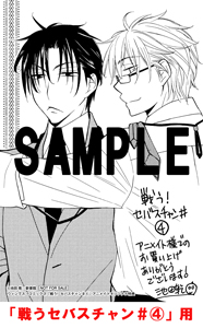 1)アニメイト様で「戦う! セバスチャン♯④」、「少年セバスチャンの執事修行④」をお買い上げいただいた方に、描き下ろしメッセージシートをプレゼント!