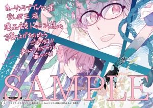 ホーリンラブブックス・まんが王・漫画全巻ドットコム様でお買い上げいただいた方にサイン&メッセージ入り描き下ろしイラストブロマイドをプレゼント。