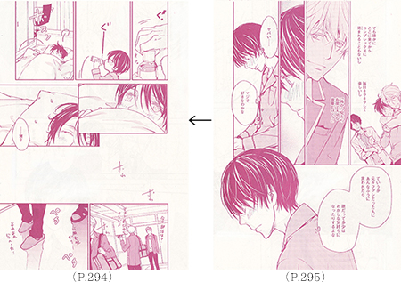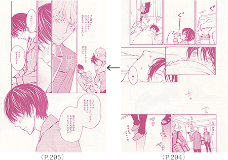 麻生海先生の「王子禁制」(原作:月村圭先生)の第3話で、P.294とP.295が入れ替わっておりました。