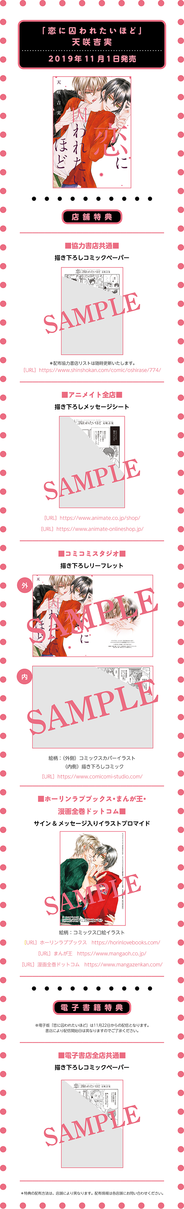 天咲吉実先生「恋に囚われたいほど」購入特典情報!