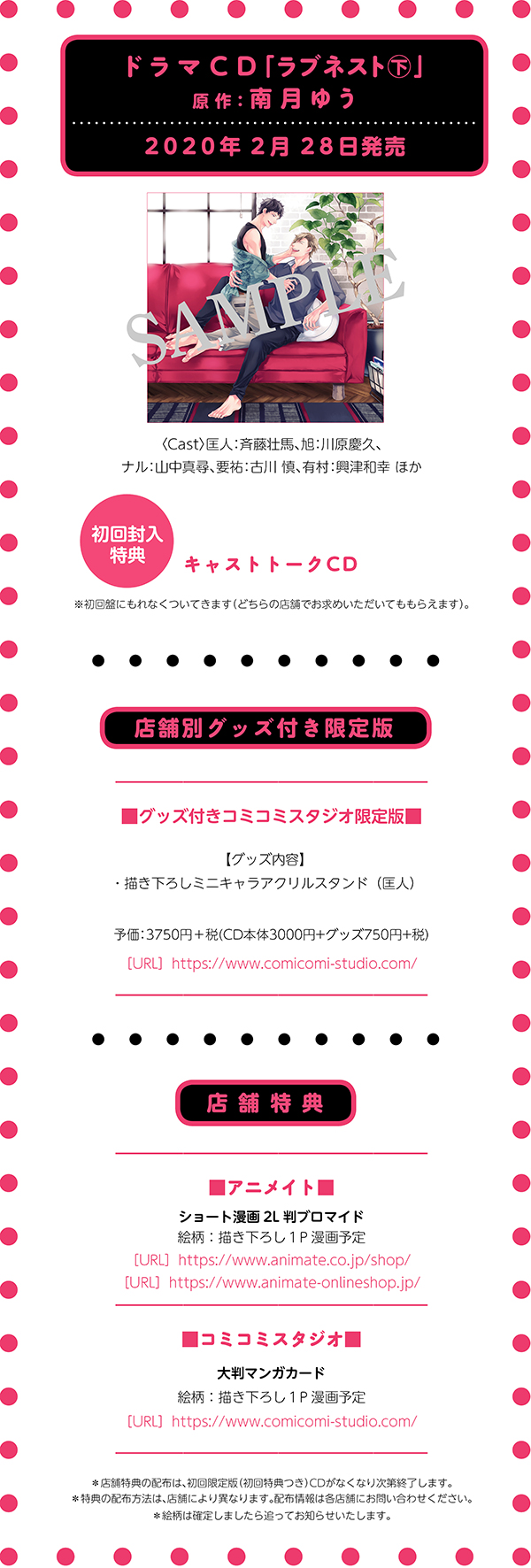 南月ゆう先生原作ドラマCD「ラブネスト㊦」購入特典情報!