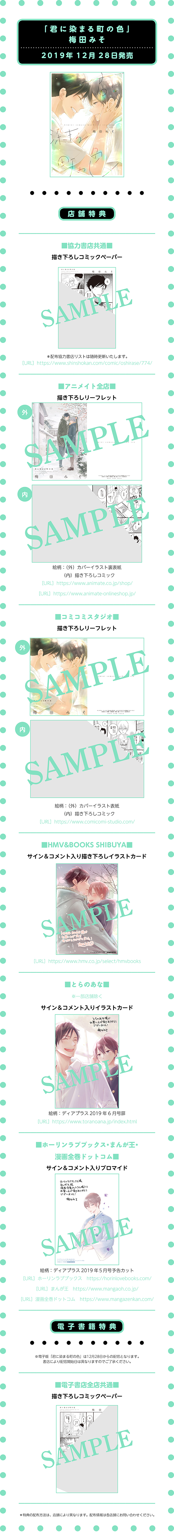 梅田みそ先生「君に染まる町の色」購入特典情報!