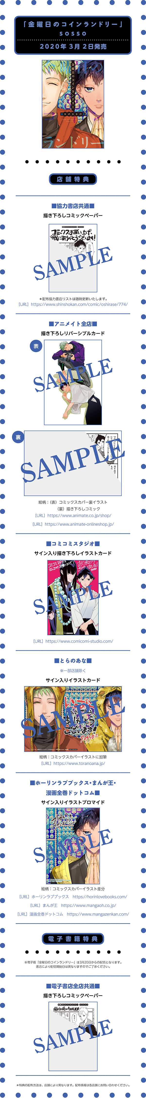 sosso先生「金曜日のコインランドリー」購入特典情報!