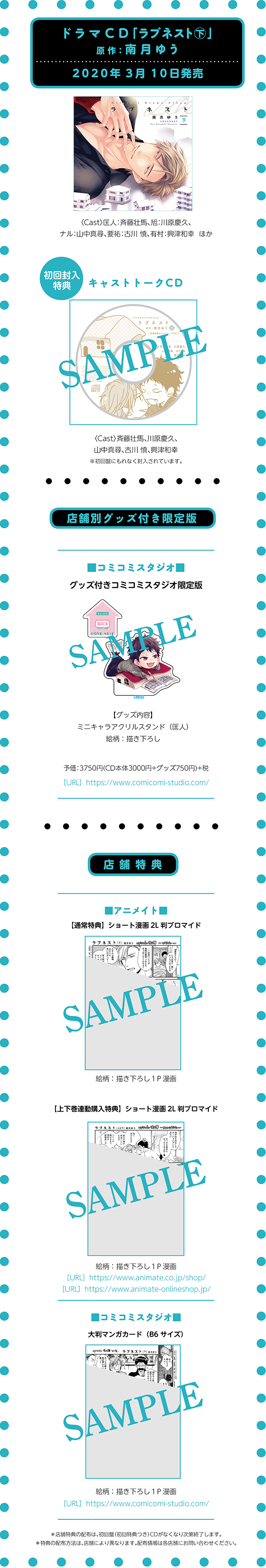南月ゆう先生原作ドラマCD「ラブネスト㊦」購入特典情報!