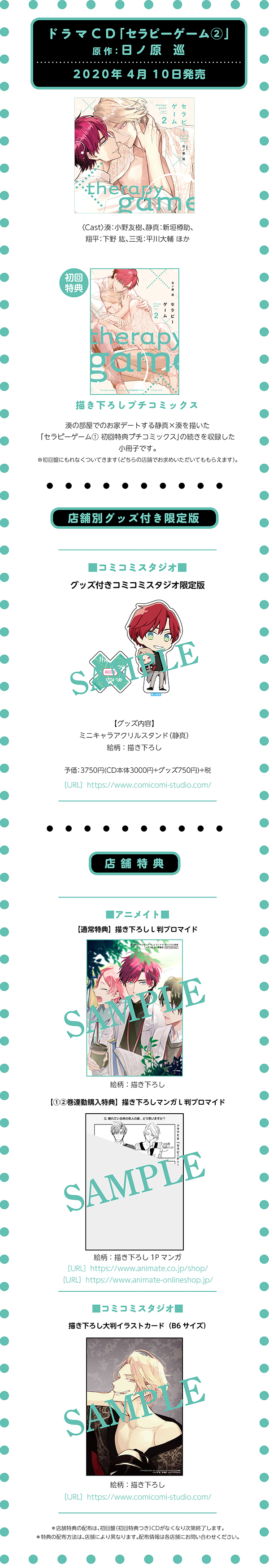 日ノ原 巡先生原作ドラマCD「セラピーゲーム②」購入特典情報!