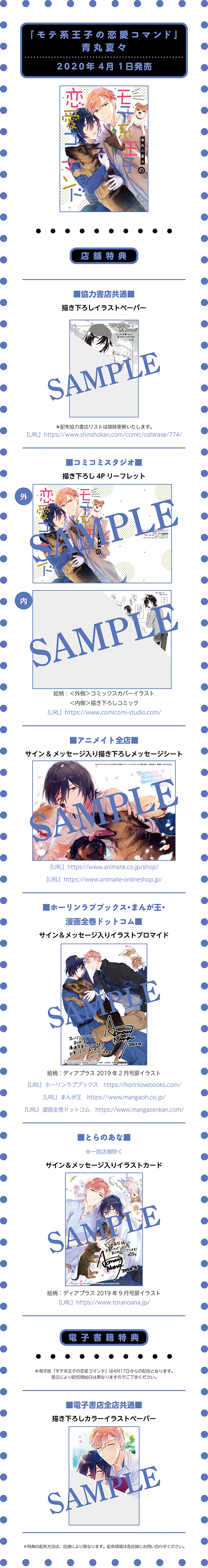 青丸夏々先生「モテ系王子の恋愛コマンド」購入特典情報!